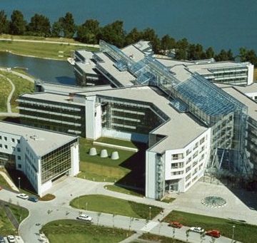 Huset som är ett av Sveriges vackraste hus, färdigställdes 1987 och ritades av den norska arkitekten Niels Torp. Huset som byggdes för SAS som huvudkontor är mycket vackerrt beläget i Frösunda vid en av Östersjöns vikar, från huset så ser man vattnet. Niels Torp vann uppdraget att rita huset efter en arkitekt-tävling där många stora namn var med, bland annat ralph Erskine.